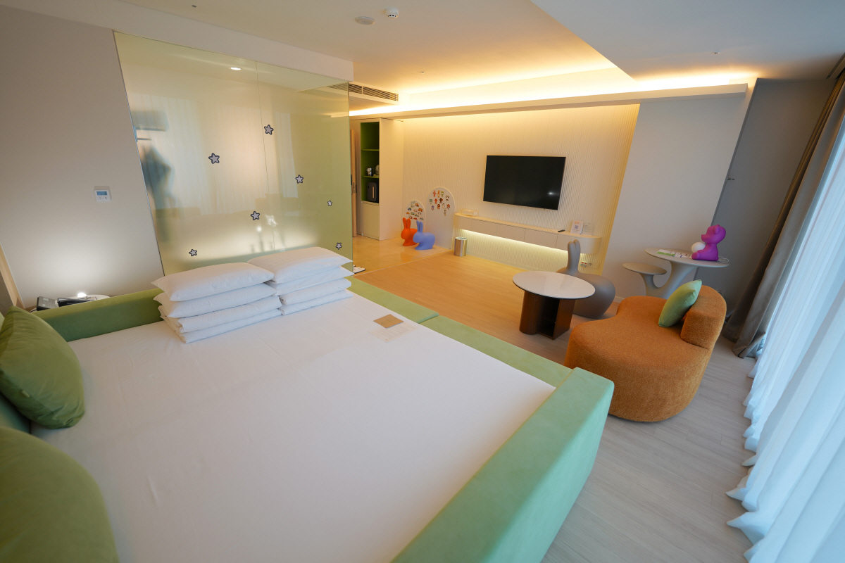 22일 강원랜드에 따르면 하이원리조트 그랜드호텔의 '슈페리어 패밀리룸'은 유럽의 친환경마크인 오코텍스(OEKO-TEX) 인증을 받은 최고급 저상형 패밀리 침대가 마련되어 있어 최대 4인 가족이 숙면을 취할 수 있으며, 토끼의자와 곰돌이 무드등 등을 배치해 포근한 분위기를 연출한 특징이다.