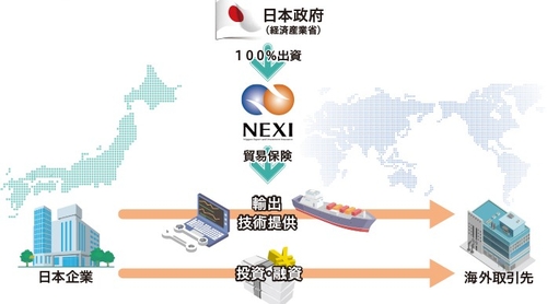 일본무역보험은 수출입, 해외 투융자 등과 관련된 무역보험을 제공하는 정부 출자 특수법인이다. 한국으로 치면 한국무역보험공사와 유사한 기능을 맡고 있다.