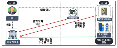 업무단지 개발사업비 조달을 목적으로 설립된 A사는 최대주주인 해외법인으로부터 지급보증용역을 받는 대신 약 70억원 규모의 외화를 해외법인의 대외계정을 통해 줬다.