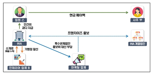 다른 업체가 가맹점 인테리어를 할 수 있도록 연결해주며 소개비를 받았지만, 세금계산서를 발급하지 않은 것으로 파악됐다. 사주는 임원에게 거액을 준 뒤 일부를 현금으로 돌려받는 수법으로 법인 자금을 유출한 것으로 나타났다.