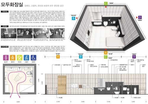 일반부 대상(국토부장관상)은 저출산 대책의 일환으로 가족 모두가 편리하게 사용할 수 있는 '모두 화장실'이 수상했다.