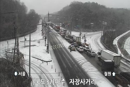 파주시는 재난 문자를 통해 "금일 12시 기준 강설 및 도로 결빙으로 적성면 일대에서 교통사고가 다수 발생하고 있다"며 "서행 운전 및 우회를 바란다"고 당부했다.