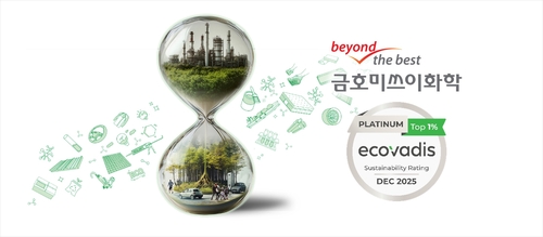 (서울=연합뉴스) 김민지 기자 = 금호미쓰이화학은 23일 글로벌 공급망 지속가능성 평가기관인 '에코바디스(EcoVadis)'로부터 최상위 등급인 플래티넘 등급을 획득했다고 밝혔다.