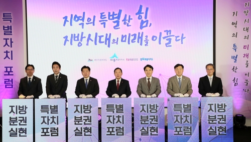 김 지사는 "강원특별법은 작년 9월에 국회에 제출했지만 아직 심의조차 이뤄지지 않고 있다"며 "5극 3특이라 불리는데도 이해할 수 없는 일이 벌어지고 있는데 4개 특별자치시도가 함께 연대해 목소리를 내길 바란다"고 말했다.