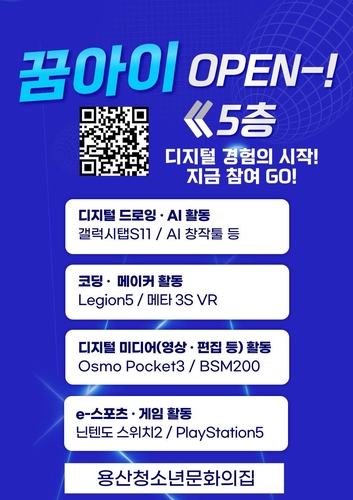 (서울=연합뉴스) 정준영 기자 = 용산구(구청장 박희영)는 용산꿈나무종합타운 내에 청소년 전용 디지털 체험·학습 공간인 '꿈아이 인공지능(AI) 디지털체험실'을 조성했다고 24일 밝혔다.