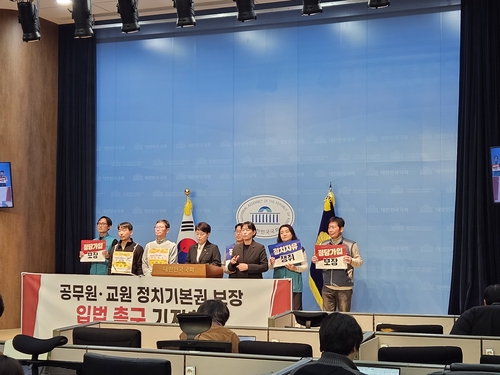 (서울=연합뉴스) 노재현 기자 = 전국공무원노동조합(전공노)과 전국교직원노동조합(전교조)은 24일 더불어민주당과 '공무원·교사 정치기본권 보장 입법 추진을 위한 협의체' 구성에 합의했다고 밝혔다.