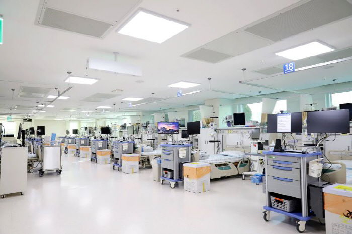 또한 호흡 상태를 정밀하게 관찰할 수 있는 최첨단 인공호흡기와 체외순환을 통해 노폐물과 염증 인자를 제거하는 투석 치료기, 병상 내 신속한 진단과 처치를 지원하는 초음파 장비 등 중증 환자 치료를 위한 핵심 장비를 갖췄다. 환자의 자세 변경과 조기 재활을 돕는 의료용 순환 침대를 비롯해 의료 가스·전기·통신·의료 장비를 집약적으로 제공하는 펜던트(Pendant) 시스템도 구축해 환자 맞춤형 치료 동선을 구현했다.