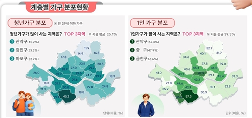 청년 가구 비율은 관악구(45.2%)와 광진구(33.2%)가 높았다. 신혼부부 비율은 강동구(10.6%)와 성동구(9.8%), 고령가구 비율은 도봉구가 33.2%로 가장 높게 나타났다.