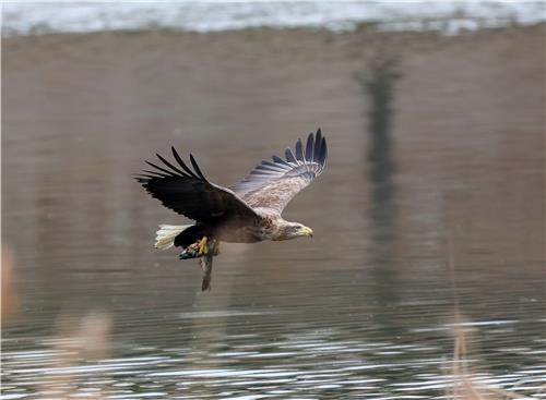 겨울을 나기 위해 강릉시 남대천을 찾은 흰꼬리수리 한 마리.