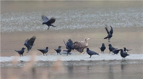 강릉 남대천에서 벌어지고 있는 조폭과의 16대 1은 흰꼬리수리가 다수와의 싸움에서 이기는 상황 과장이나 허세가 아니라 생존이다.