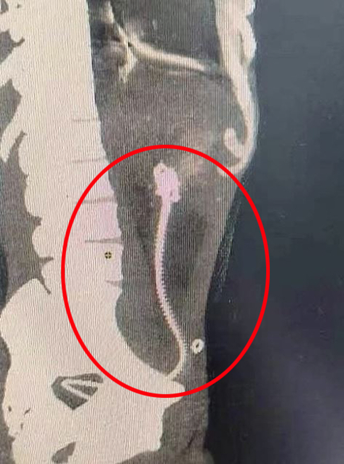 CT 검사 결과, 실제로 길이 30cm의 장어가 대장 내에서 움직이고 있는 것이 확인됐다.