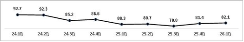 내수 전망지수는 85.6으로 전 분기보다 3.0p 올랐다.