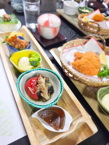 또한 기본적으로, 료칸 내부 식당의 음식도 인상적이었다. 첫날 숙소인 '유노 야도 사이카'의 내부 식당은 만족스러웠다. 작은 그릇 다섯에 담긴 전채가 계절의 향을 조용히 소개했다. 본 요리가 시작되며 '오종 모둠'이 등장했다. 작은 요리 한 점씩 맛볼 때마다 바다의 결이 다르게 전해져 이 코스의 방향을 분명하게 보여줬다. 마지막에 머물렀던 스이메이소의 음식도 대체로 만족감을 줬다. 저녁 식사 자리에는 가이세키와 별도로 사진 촬영용 게 요리 정식 세트가 등장해 눈길을 끌기도 했다.