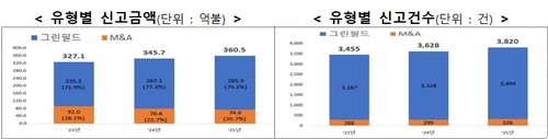 반면 전기·전자(35억9천만달러·-31.6%), 기계장비·의료정밀(8억5천만달러·-63.7%) 등은 전년 대비 투자액이 감소했다.