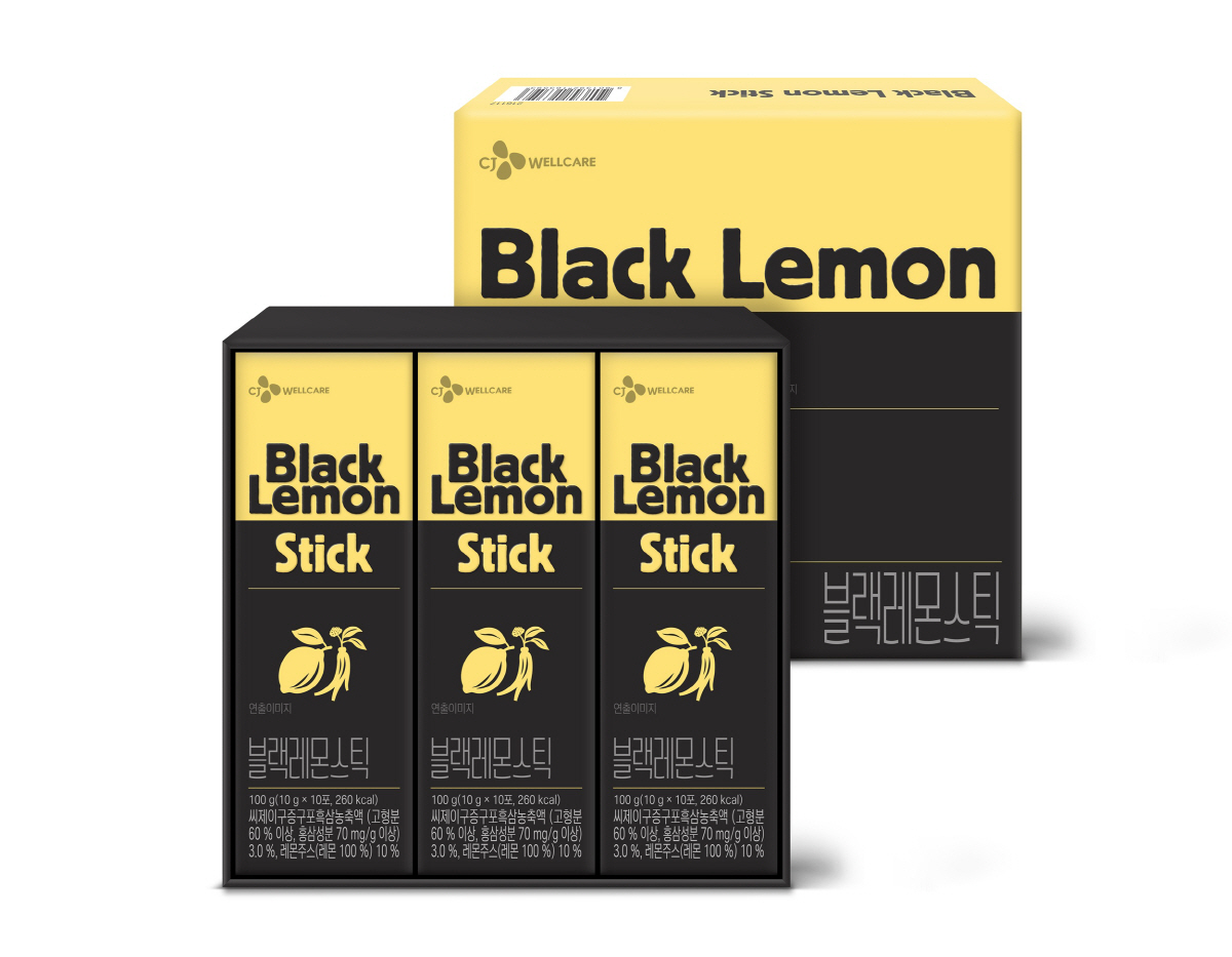'블랙레몬스틱'은 흑삼에 레몬을 더해 쓴맛과 섭취 방식에 대한 부담을 완화한 제품이다. 최근 레몬즙, 레몬올리브즙 등 레몬 기반 제품의 일상 섭취 트렌드에 착안해 스페인산 유기농 레몬을 더했다.