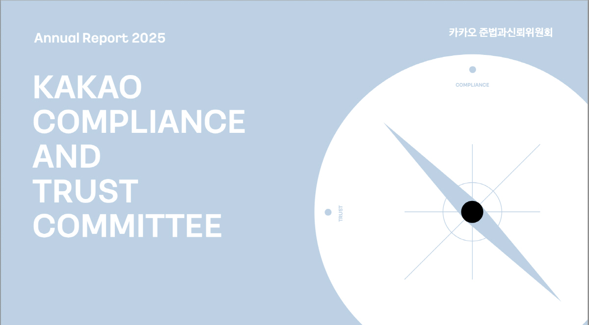 카카오 준법과신뢰위원회(이하 '준신위)가 12일 올해 첫 정기회의를 개최하고 준법경영의 가치와 2025년 활동을 담은 '카카오 준법과신뢰위원회 연간보고서 2025(보고서)'를 발간했다고 밝혔다. 카카오 준신위는 계열사의 준법·신뢰경영을 지원하는 독립기구다.