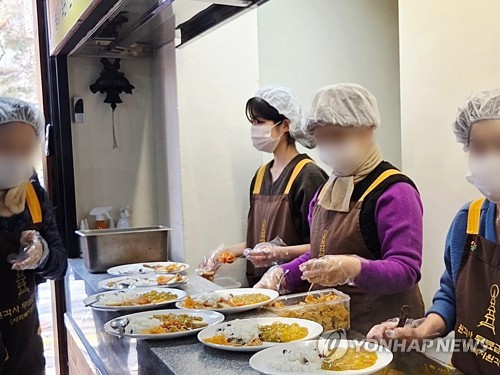 (서울=연합뉴스) 이진주 인턴기자 = 지난 13일 서울 종로구 종로17길 32 원각사 무료급식소에서 점심을 배식하고 있다. 2026.01.15