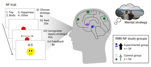 이들은 이 연구에서 기능적 자기공명영상(fMRI)을 기반으로 한 신경영상 피드백 기법을 개발, 건강한 성인 85명을 무작위로 실험군과 대조군으로 나누어 실험군에 복측 피개 영역을 포함한 중뇌-변연계 도파민 보상 경로의 활동을 의도적으로 증가시키는 훈련을 했다.