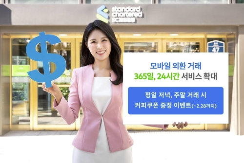▲ SC제일은행은 모바일뱅킹 애플리케이션을 통한 '365일 24시간 실시간 외환거래 서비스'를 출시했다고 20일 밝혔다. 외환거래 시간을 기존 은행 영업시간 위주에서 연중무휴 24시간으로 확대한 것이 특징이다. 일일 외환거래 한도 제한도 별도로 두지 않았다. SC제일은행은 이 서비스를 역외펀드, 외화예금 등 다양한 상품과 연계할 계획이다. (서울=연합뉴스)
