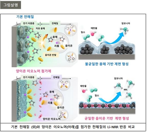 그 결과 음이온이 안정적으로 모이는 계면이 형성되면서 불필요한 반응이 크게 줄어 암모니아 생성 속도가 기존의 두 배로 향상됐다.