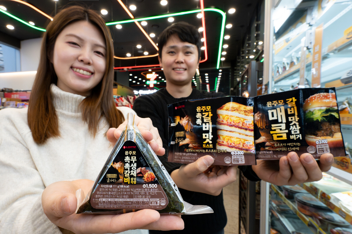 윤주모촉촉갈비무생채삼각김밥은 달짝지근한 갈비에 경연 심사위원들로부터 극찬을 받은 윤주모표 무생채가 곁들여져 궁합이 좋은 한 끼 식사를 완성했다. 윤주모촉촉갈비맛토스트는 윤주모의 비법 레시피가 적용된 달달한 돼지갈비에 아삭한 양배추 샐러드가 토핑된 샌드위치다. 윤주모매콤갈비맛쌈버거는 현재 SNS에서 바이럴되고 있는 윤주모 쌈장 레시피를 갈비맛 버거에 적용한 상품으로 매콤한 청양고추와 로메인까지 들어 진짜 쌈을 먹는 듯한 느낌의 햄버거를 선보인다.