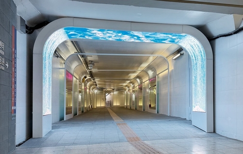 (서울=연합뉴스) 정준영 기자 = 서초구(구청장 전성수)가 '서초 어번캔버스(Urban Canvas)' 사업을 통해 잠수교 지하횡단보도를 감성적인 미디어아트와 안내 기능을 결합한 예술공간으로 탈바꿈시켰다고 21일 밝혔다.