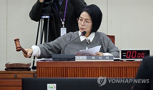 | (서울=연합뉴스) 이동해 기자 = 9일 국회에서 열린 국회 과학기술정보방송통신위원회 제19차 전체회의에서 최민희 위원장이 의사봉을 두드리고 있다. 2025.12.9 eastsea@yna.co.kr |