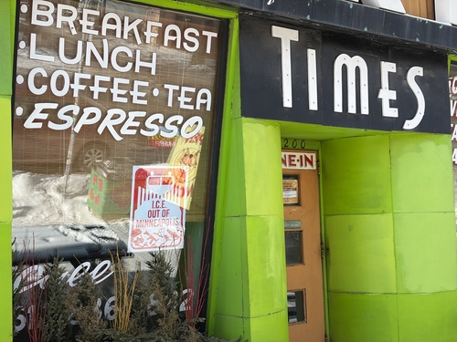 (미니애폴리스=연합뉴스) 권영전 특파원 = 20일(현지시간) 미국 미네소타주 미니애폴리스의 한 음식점에 연방 이민세관단속국(ICE) 요원들에 반발하는 포스터가 붙어 있다.