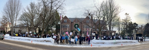 '여성 행진'(Women's March) 주최로 전국적으로 진행된 '자유 아메리카 파업'(Free America Walkout)의 일환으로 이날 오후 2시로 공고됐던 이날 시위 현장에는 시작 30분 전까지만 해도 아무도 나타나지 않았으나, 이후 가족·친구들과 삼삼오오 몰려들어 순식간에 50명이 모였고 2시 30분이 되자 100명을 넘겼다.