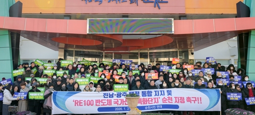 (순천=연합뉴스) 손상원 기자 = 시민단체인 전남 순천 시민연대는 21일 RE100(재생에너지 100%) 반도체 국가산단 특화단지를 순천에 지정하는 내용을 광주·전남 행정통합 특별법에 반영해야 한다고 촉구했다.