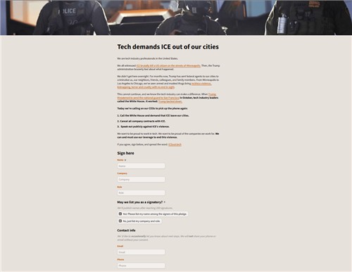 약 1주 전에 'ICEout.tech'라는 사이트를 개설해 서명운동을 시작한 샌프란시스코 거주 인사관리 컨설턴트 애니 디머는 테크업계 종사자 모두가 도널드 트럼프 대통령을 지지하는 것은 아니라는 점을 보여주기 위해 서명운동을 하고 있다고 WP에 설명했다.