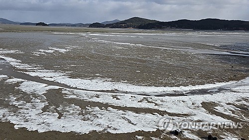 아직 단단하게 얼지는 않았지만, 중왕리 앞바다 결빙은 해변부터 시작해 수십m 밖까지 진행됐다.