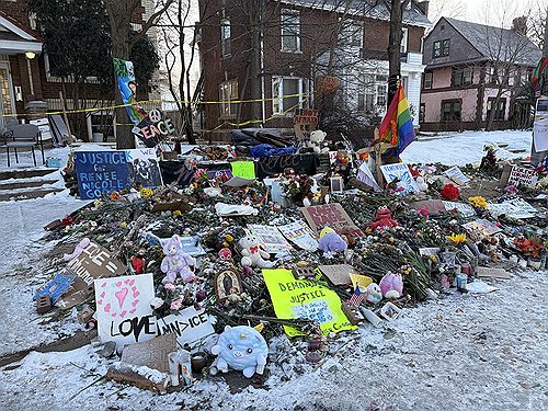 친구 둘과 함께 오전 일찍 이곳을 찾은 한 여성 추모객은 "르네 굿에게 애도의 뜻을 표하기 위해 뉴욕에서 왔다"며 "이건 살인사건인 동시에 비극적이고 역사적인 순간으로 미국민 모두에게 의미하는 바가 크다"고 말했다.