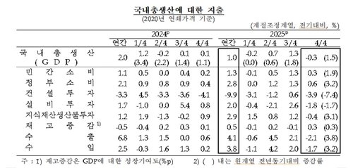 특히 내수 기여도가 직전 3분기(1.2%p)와 비교해 1.3%p나 급락했다.