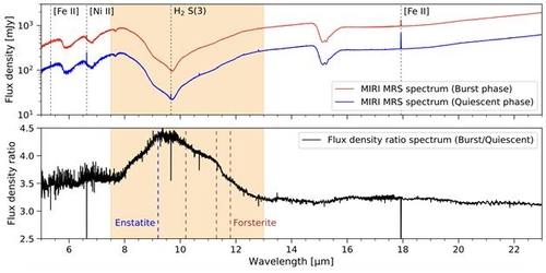 그 결과 폭발 단계에서만 결정질 광물이 검출되는 것을 확인해 태아별에 가까운 뜨거운 원반에서 규산염 결정화가 일어나는 것을 확인했다.