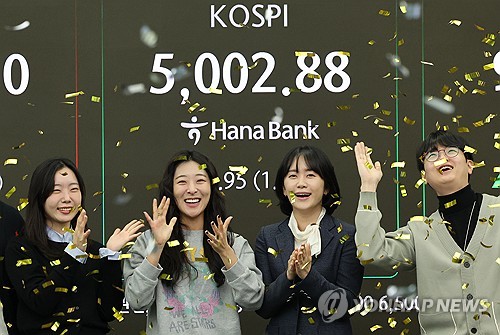 이 대통령이 대선 공약으로 내걸었던 '코스피 5,000 시대'가 현실이 된 셈이다.