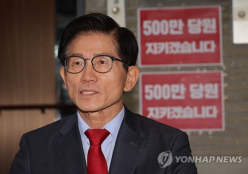 (서울=연합뉴스) 김빛나 기자 = 21대 대통령선거 과정에서 국민의힘 예비후보 신분으로 유권자에게 명함을 돌린 혐의로 기소된 김문수 전 고용노동부 장관이 22일 첫 재판에서 "선거 운동 취지는 없었다"며 혐의를 부인했다.
