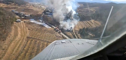 (영천=연합뉴스) 최수호 기자 = 22일 낮 12시 22분께 경북 영천시 청통면 단독주택에서 난 불이 인근 야산으로 확대해 당국이 진화작업에 나섰다.