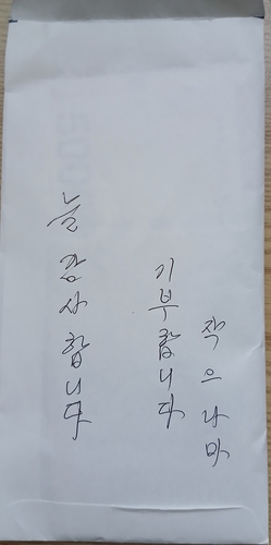 봉투에는 정갈한 글씨체로 '작으나마 기부합니다. 늘 감사합니다'라고 적혀 있었다.