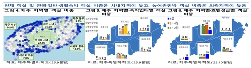 지난해 9월 기준 도내 숙박객실은 총 7만9천169실이다. 이 가운데 관광숙박업이 41.9%, 일반숙박업 26.1%, 농어촌민박업 19.5%, 생활숙박업 10.4%, 기타 2.1% 순이다.