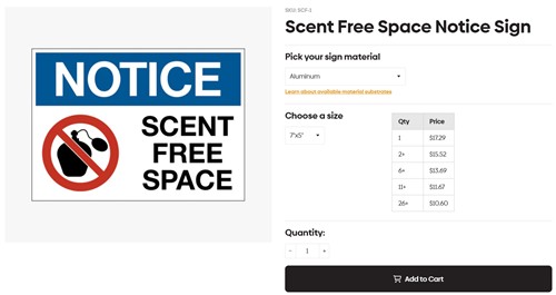 CCOHS는 "향기 제품 속 화학 물질은 천식이나 알레르기, 기타 질환을 앓는 이들에게 해로울 수 있다"며 사업장 내 무향 정책 도입을 권고하고 '무향 구역' 포스터를 배포하는 등 건강한 공기 질 유지를 강조하고 있다.