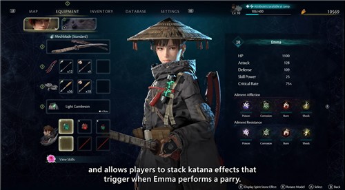 영상에는 검을 사용하는 여성 주인공 '엠마'가 동료 개 '쿠'와 함께 거대 수목으로 뒤덮인 맵을 탐험하고, 여러 거대 괴물의 공격을 받아쳐 내면서 전투를 펼치는 모습이 담겼다.