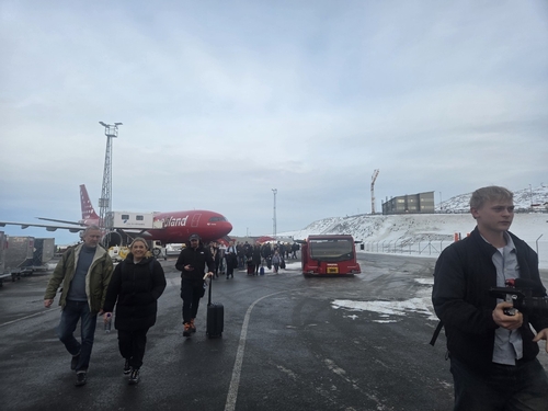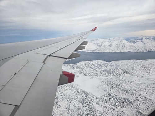 도널드 트럼프 대통령이 미국이 통제하겠다며 점찍은 그린란드 수도 누크로 향하는 에어 그린란드 여객기 이륙을 앞둔 22일 오전(현지시간) 덴마크 코펜하겐 공항.