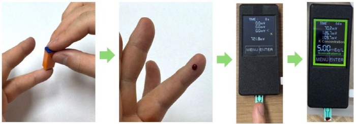 지금까지 칼륨 측정은 병원을 방문해 정맥혈을 채혈하고 대형 장비로 분석해야만 가능했기 때문에 많은 시간이 필요했다. 당뇨 환자가 집에서 쉽게 사용 가능한 혈당계처럼 칼륨을 언제 어디서나 스스로 짧은 시간 안에 재는 것은 기술적으로 어려움이 많았다.
