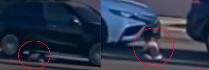 [스포츠조선 장종호 기자] 달리는 차에서 떨어진 아이가 뒤따르던 차량에 치일 뻔한 장면이 공개돼 충격을 주고 있다.
