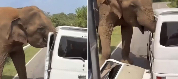 [스포츠조선 장종호 기자] 스리랑카에서 사파리 투어 중이던 러시아 관광객들이 코끼리의 공격을 받아 목숨을 잃을 뻔한 사건이 발생했다.