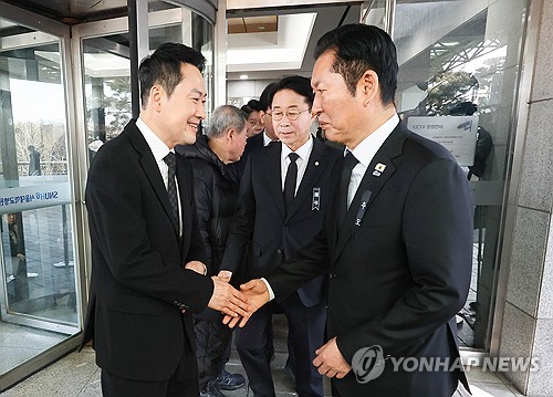 정 대표는 빈소를 떠나는 장 대표와 국민의힘 지도부를 문 앞까지 배웅하는 모습도 보였다.