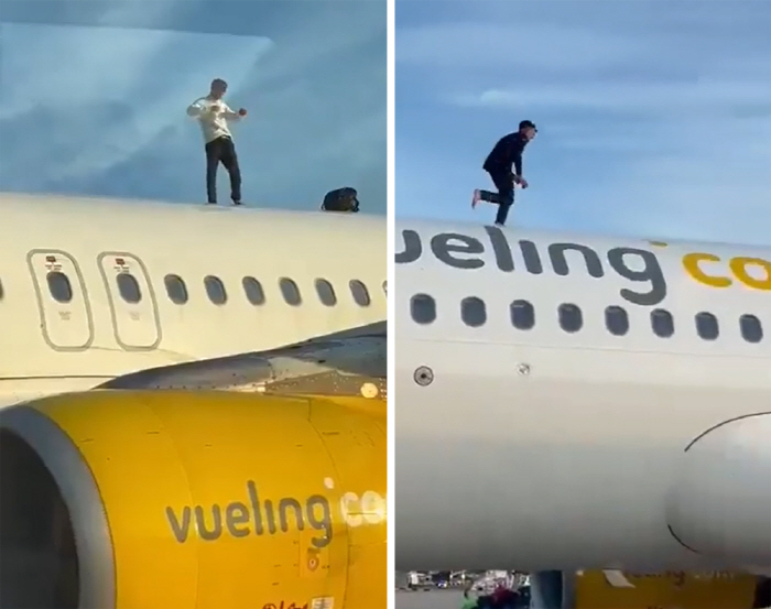 [스포츠조선 장종호 기자] 스페인의 한 공항에서 한 남성이 비행기 위에 올라 춤을 추며 소동을 벌여 항공편이 2시간 이상 지연되는 일이 발생했다.