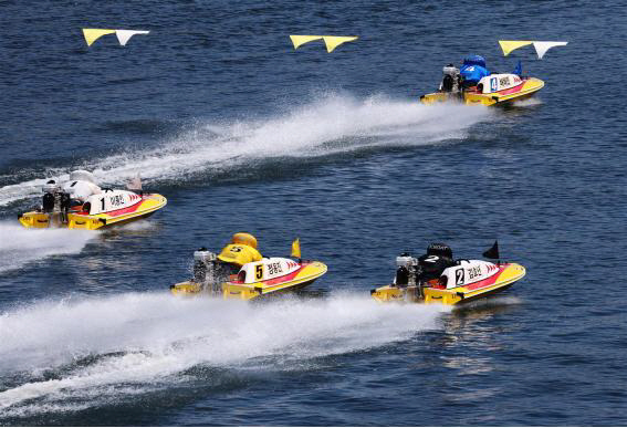 미사경정장에서 경주에 나선 보트들이 턴마크를 향해 전력으로 질주하고 있다. 사진제공=국민체육진흥공단