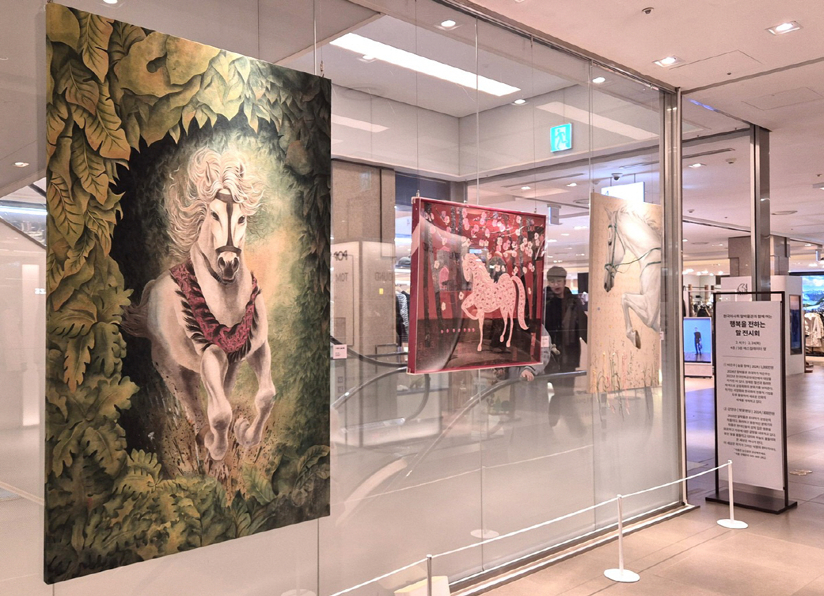 전시작은 말의 역동성과 함께 '행운' '도전' '성취' 등 다채로운 상징을 담아냈다. 박은주 「숲을 향해」 강양순 「벚꽃엔딩」 임영주 「Smiling portrait-스말」 제혜경 「무한경주」 연미진 「탈피」 김은주 「화려한 동행」 김현주 「영혼의 파동」 등이 전시 중이다.